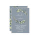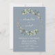 Eucalyptus Greenery Succulent Botanical Watercolor, Spring Wedding Invices on Dusty Blue - inclui uma bela e elegante tipografia com folhas botânicas modernas e verde para a celebração especial do dia do casamento.