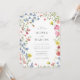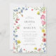 O Colorido Boho Whimsical Wildflower Fairytale Elegante Invitation Bohemian compôs um convite floral romântico com flores silvestres e botânicos coloridos pastel, em cor d'água impressa manualmente. Por favor, edite a parte de trás do convite com a sua foto. O único fundo de flor selvagem é lindo para casamentos de jardim de conto de fadas e casamentos florais de vassoura. Convites editáveis para primavera, verão, outono (outono) e casamentos no inverno.