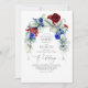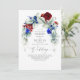 Romântica e elegante Burgundy Vermelho e marinho de flores azuis convite para o casamento.