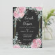 Convite Casamento Elegante de Frame de Boho Preto Floral