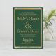 Elegante na moda, moderno, verde escuro e ouro minimalista convite para casamento. Um convite simples de luxo com um fundo personalizável.