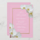 Convide seus entes queridos para comemorar seu casamento com este convite de casamento elegante e moderno personalizado. Delicar a orquídea branca floresce lindamente sotaque seus nomes, contra um sofisticado pano de fundo rosa enquadrado com uma sutil borda dourada. Personalize com todos os detalhes essenciais do seu casamento para um anúncio de eterno.