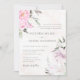 Um elegante convite de casamento floral com flores cor d'água cor-de-rosa com caligrafia manual moderna.