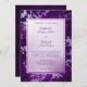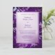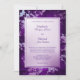 Este é um convite para casamento memorável e moderno para qualquer estação. A característica é um fundo de fronteira de roxo inclinado que quase brilha com um padrão abstrato de prata que lhe é aplicado. Seu texto de casamento está em roxo em um retângulo de prata/violeta verde claro no meio que está junto com uma fina linha roxa. A parte de trás do convite é o mesmo roxo gradiente sem a lata prateada. Único e muito atraente!