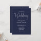 Este convite de casamento de letra elegante azul-marinho pode ser personalizado com todas as informações especiais do seu dia de casamento no verso, incluindo seu RSVP, acomodação e detalhes adicionais. Concebido por Thisisnotme©