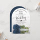 Este belo convite para o casamento mostra uma fotografia de um rosa de cor azul ou cinza de aço empoeirado, de longo curso, que se põe ao seu lado refletindo numa piscina de água com ondulações e ondas. A tipografia apresenta uma elegante caligrafia de escrita e a redação é um fazer formal deste convite tanto moderno quanto clássico. O fundo é uma bela cor azul esmaltada. É uma maneira maravilhosa de convidar seus amigos e família para compartilhar seu dia especial.