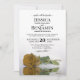 Este convite para o casamento é elegante, exuberante e romântico. Ele apresenta uma bela fotografia de um rosa ouro de longo solteiro, que se estende por seu lado, refletindo em água com ondas e ondulações. O dorso é um ouro marmoreado ou amarelo mostarda. Uma bela maneira de convidar seus amigos e família para compartilhar em seu dia especial.