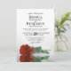 Este convite para o casamento é elegante, exuberante e romântico. Apresenta uma bela fotografia de um rosa cor de laranja, cor de laranja, de solteiro longo e enraizado, deitado do lado, refletindo em água com ondas e ondulações. O dorso é um número queimado marmoreado ou cor de ferrugem. Uma bela maneira de convidar seus amigos e família para compartilhar em seu dia especial.