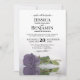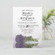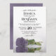 Este convite de casamento é elegante, exuberante e romântico. Apresenta uma bela fotografia de um solteiro roxo empoeirado, lavanda ou rosa de cor lilás que se encontra ao seu lado, refletindo em água com ondas e ondulações. O dorso é uma cor púrpura clara marmoreada. Uma bela maneira de convidar seus amigos e família para compartilhar em seu dia especial.