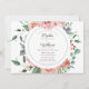 Convide seus queridos amigos e família para comemorar seu casamento quando você enviar esses convites bonito de casamento floral. Estes convites para o casamento apresentam uma elegante coroa floral com uma borda circular interior. Rosas cor-de-rosa e pêssego, com bagas vermelhas e folhas botânicas verdes e cinzas, rodeiam o texto num design circular. Personalize todos os seus detalhes, como o seu nome, data do seu evento e o nome do seu local.