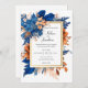 As cores escuras conhecem a elegância do eterno neste Convite Elegante de Casamento de Cobalto Blue Orange Terracotta Boho, projetado para dar o tom perfeito para o seu grande dia. O azul de cobalto impressionante, emparelhado com terracota quente e sofisticados cor-de-rosa pincelados, cria uma paleta de cores impressionante que parece moderna e romântica. Um delicado quadro de ouro destaca o design, enquanto os belos detalhes florais de aquarela e o roteiro de caligrafia na moda adicionam um toque chic sem esforço. Este convite é versátil para tantos temas de casamento, quer você esteja planejando um encontro de outono rústico, uma celebração romântica de jardim, um casamento de boho de verão, ou um evento elegante de inverno. Personalize todos os detalhes facilmente com seus nomes, data de casamento e local, fazer-o exclusivamente seu. Além disso, para casais ocupados, é simples enviar digitalmente ou encomendar impressões, garantindo o compartilhamento sem estresse. Peça a sua e comece a celebrar sua história de amor em estilo!