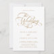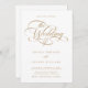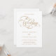 Ouro elegante e convite para casamento branco apresentam uma inscrição caligráfica romântica e irrepreensível com texto opcional no verso. Perfeito para qualquer estação. Para uma personalização mais avançada deste design, clique no BOTÃO FERRAMENTA DESIGN AZUL acima!