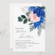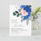 Convite Casamento Elegante Do Jardim Azul-Rosa-Floral Coba