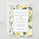 Este elegante convite para o casamento dos citros apresenta limões aquosos com verde-esmagador, delicadas flores de jasmim e ramos de oliveira, capturando a essência do Mediterrâneo. Sábio clássico verde atrás. Uma escolha elegante para um casamento ao ar livre, do tema da natureza ou do destino.