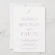 Convite de casamento elegante com um design clássico com seu monograma em uma fonte de script junto com seus nomes e detalhes em uma fonte serif tradicional.