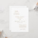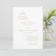 Convite de casamento elegante com um design tipográfico simples e mínimo. As palavras em destaque estão em uma tipografia de script e o layout é compensado por um toque moderno. O modelo apresenta o texto na parte traseira de um tudo em um único convite ou você pode excluir o texto para deixar o vazio traseiro. O tema de cores é ouro e branco e pode ser alterado na ferramenta de edição de design. Esta design é excelente se você está tendo um casamento informal ou formal.