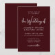 O convite de casamento burgundy elegante e moderno conta a história de uma celebração que valoriza a graça, o calor e a simplicidade moderna. Inspirado em tons ricos de burgundy que simbolizam amor e profundidade, este convite combina uma paleta de cores luxuosas com um layout contemporâneo e limpo para criar uma primeira impressão refinada para o seu dia de casamento. A tipografia cuidadosamente organizada destaca seus nomes e detalhes com clareza, tornando-o visualmente atraente e fácil de ler. O design minimalista garante que ele pareça atemporal em vez de tendência, enquanto a tonalidade profunda de burgundy adiciona um toque de romance e sofisticação que é adequado para casamentos clássicos, modernos e formais. Perfeito para casais que desejam que a papelaria de casamento seja elegante e pessoal, este convite define o tom para uma celebração significativa e se torna um belo souvenir que os convidados irão guardar por muito tempo após o evento.