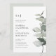 Elegante Russo Eucalyptus Código QR Sage Monograma Convite Casado. Nosso simples verde botânico, tudo em um convite de casamento, apresenta um galho elegante de eucalipto com aquarela em tons de sábio e verde empoeirado no texto do convite ao seu lado. A parte de trás do convite também exibe o código QR do seu site de casamento, assim como o próprio URL do site, permitindo que seus convidados facilmente RSVP on-line e visualizem todos os detalhes normalmente enviados em um pacote de casamento. O código QR atualizado neste convite permite gerar o seu próprio código QR do site de casamento simplesmente digitando o URL do seu site na modelo de personalização onde indicado. Todo texto de exemplo pode ser facilmente revisado com suas próprias informações sobre o modelo de personalização.