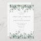 Este elegante convite para o casamento mostra verde-eucalipto pintado à mão num fundo branco limpo, criando um olhar botânico minimalista. Perfeito para casamentos rústicos, jardins, ao ar livre ou naturais. Personalize-o facilmente para o seu dia especial.