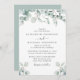 Convite de casamento elegante, com aquarelas de eucalipto verde sage, na moda e tipografia de cinza mole.