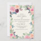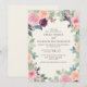Convite de casamento elegante em estilo boho com lindas flores em aquarela rosa e roxo e folhas verde sage em um cartão creme.