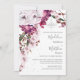 Um convite de casamento elegante e personalizado. O convite para o casamento contém flores de burgundy e blush e um Chandelier. Os sotaques prateados também estão no convite de casamento. Mude facilmente as informações para o seu papel de carta de casamento personalizado. A partir de uma gama de papéis de carta de Casamento personalizados correspondentes dos Designs Finos de Chessie.