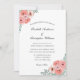 Um elegante design floral cor-de-rosa e branco em fundo branco. A parte de trás do cartão pega as cores das flores cor-de-rosa na frente. Todos os campos de texto são editáveis para inserir seus detalhes específicos. Veja nossos outros produtos nesta suíte de casamento Floral Rosa.