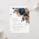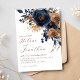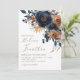Convite Casamento Elegante Floral Floral de marinho Azul-F