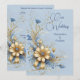 Convite Casamento Elegante Flores Azul Centáurea Dourado