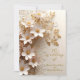 Convite Casamento Elegante Flores Brancas de Renda Dourado