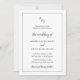 Convite de casamento tradicional com um simples design com seu monograma junto com palavras de sotaque em um roteiro elegante. Este clássico convite de casamento preto e branco é excelente para um casamento formal.