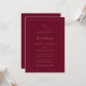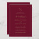 O convite de casamento tradicional com um simples design com seu monograma junto com seus detalhes em um elegante ouro falso sobre um fundo burgundy. Este convite clássico de casamento é excelente de um casamento formal no outono.