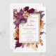 Rich burgundy, orange aquecida queimada, e soft terracotta misturam-se lindamente com tons de ferrugem profundos neste elegante convite para casamento, perfeito para casais que querem uma design que sinta eterno e romântico. Apresentando flores exuberantes, sonhadoras e um roteiro de caligrafia na moda, este convite dá o tom para uma celebração cheia de amor e beleza. A sua versátil paleta de cores faz dela uma escolha ideal para casamentos outono, celebrações de verão tardias e até mesmo eventos de inverno com uma vibração acolhedora e quente. Quer seu tema seja chic rústico, elegância boho ou romance clássico, este design se adapta perfeitamente. Personalize facilmente todos os detalhes para corresponder aos seus nomes, data e local e escolha a conveniência de enviá-los digitalmente para compartilhamento rápido com amigos e familiares. Comece a personalizar hoje e faça seus convidados sentirem a magia do seu dia especial antes que ele comece!