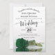 Este maravilhoso convite para o casamento apresenta um design floral moderno com um rosa verde-esmeraldo, de solteiro longo, deitado do seu lado, refletindo numa piscina com ondas e ondulações. A design é simples, elegante, romântica e sofisticada, com caligrafia antiga e conteúdo totalmente personalizável.