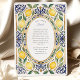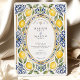 Convite Casamento Elegante Mediterrâneo Limão e Azulejo Az