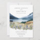 Crie seu convite personalizado para casamento, com design minimalista e elegante ilustração da paisagem da montanha de aquarela.