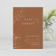 Um convite de casamento minimalista da terra cotta acentuado com floral botânico desenhado à mão e um roteiro de caligrafia de tendências. Perfeito para qualquer tema de casamento moderno em todas as estações. Personalize facilmente as suas informações pessoais, incluindo monograma e iniciais na parte traseira do cartão.