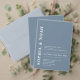 Este convite apresenta um sofisticado fundo azul de alcaçuz com um design minimalista. Os nomes do casal são destacados em ousado, elegante tipografia em azul empoeirado, acrescentando um toque de elegância moderna ao convite.
