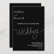 Este elegante convite de casamento preto e branco é perfeito para um casamento moderno. o simples design apresenta uma caligrafia branca elegante num fundo preto.