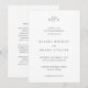 Convite de casamento elegante com um design simples e clássico com seu monograma no topo e os detalhes do seu evento em fontes serifadas tradicionais.