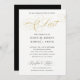 Convite de casamento clássico, preto e branco, subestimado, com o elegante roteiro caligráfico da frase de montagem "Finalmente". Adequado para qualquer noivado longo, mas especialmente relevante para casais gay que esperaram tanto tempo para se casarem.