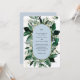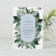 Convite de Casamento de Jardim Botânico Azul Empoeirado com Arco Moderno. Folhas Botânicas Aquareladas, convites de casamento elegantes temáticos de jardim.