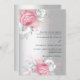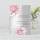 Um fundo de olhar mal prateado. Decorado com rosas grandes, rosa e brancas. Personalize e adicione seus nomes e detalhes do casamento.