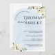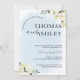 Anuncie seu dia especial com elegância de eterno usando este Convite de Casamento de Blue Watercolor e White Rose. Apresentando uma lavagem de aquarela macia em tons azuis calmantes e flores brancas detalhadas, este convite estabelece um tom romântico e refinado para sua celebração. Perfeito para casamentos clássicos, jardins ou modernos. Totalmente personalizável com sua redação e detalhes do casamento para se adequar à sua história de amor única.