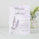 Lavanda de aquarela com filtro de aquarela e fundo de lavagem de aquarela roxa. Convite para casamento floral elegante.