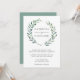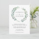 Convites de casamento verdes em verde e branco, com um louro com folhas pintadas de aquarela. Estes convites de casamento botânicos modernos têm uma folhagem adorável que é perfeita para um casamento de verão.