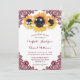 Convite de casamento elegante rústico em borgonha e girassóis ideal para um casamento rústico em borgonha no campo, jardim, quintal ou celeiro, inspirado nas flores de girassol. Itens correspondentes disponíveis para complementar este convite de casamento floral em borgonha.
