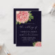 Convite Casamento Elegante Vintage Rosa e Peônia Navy