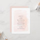 Convite de casamento em design de aquarela rosa corado em uma fonte e layout modernos. Com tipografia em tinta cinza. O verso do convite é rosa sólido coordenado. Um convite de casamento simples, porém lindo.