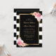 A Elegante aquarela borla cor-de-rosa, convites para casamentos florais cor-de-rosa, com flores rosas e cor-de-rosa esbranquiçada e verde-dourado sobre fundo listrado preto e branco. Itens correspondentes disponíveis. Personalizar facilmente online.